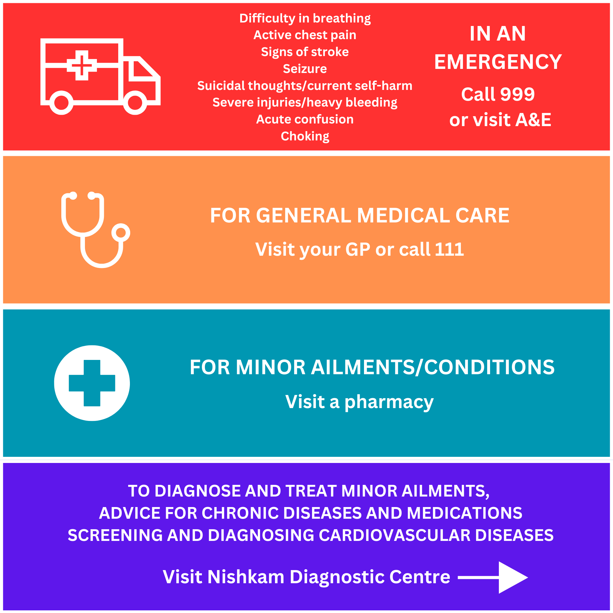 Nishkam Diagnostic Centre is a free GP-led service. We provide:
